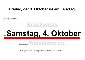 Im Weinladen und im Weinladen Online gelten noch die jetzigen Preise weiter bis zu unseren Sommerferien ab 13. Juli.